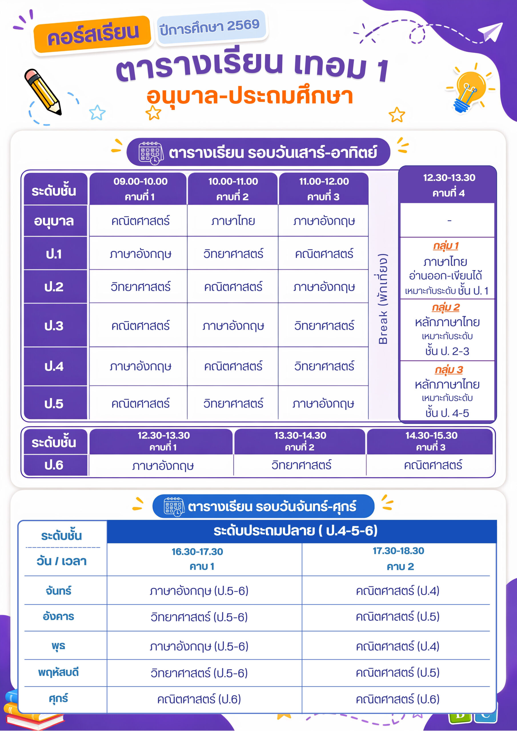 (เปิดรับสมัคร) คอร์สเทอม 1 รุ่นที่ 1 ระดับอนุบาล ป.1-2-3-4-5-6 @โรงเรียนสุรพจน์วิทยา 2 ปีการศึกษา 2569